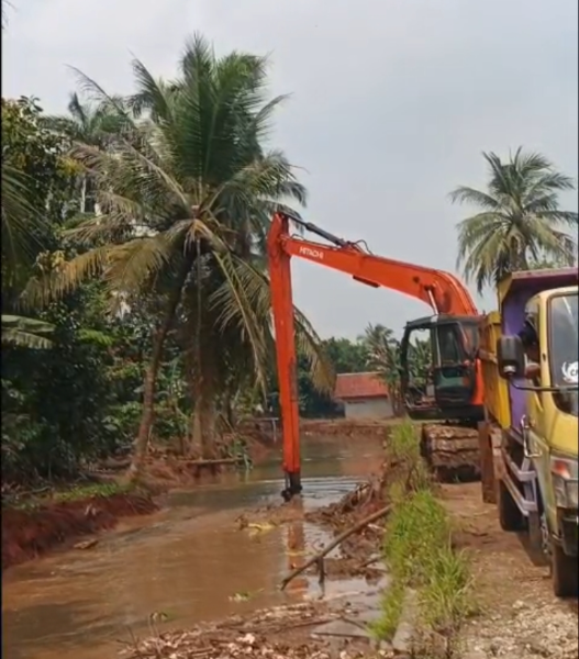Bogor || Gardatipikornews.com -- Menyikapi banjir akibat jebolnya tanggul Kali Cibeuteung pada hari Jumat dini hari lalu (11 Juli 2025), dan dengan sigap setelah mendapat informasi dari pihak forkopimcam, Bupati Bogor Rudy Susmanto S.Si gercep menurunkan excavator ke wilayah Desa Ciseeng Kec. Ciseeng.