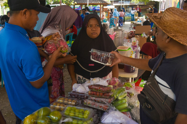 Lain pula dengan Muhsin, pedagang buah yang memanfaatkan kegiatan GPM untuk membuka lapak buah. Dirinya mengaku membeli dari Pasar Pringgarata dan menjualnya kembali dengan harga lebih murah dari harga pasar.