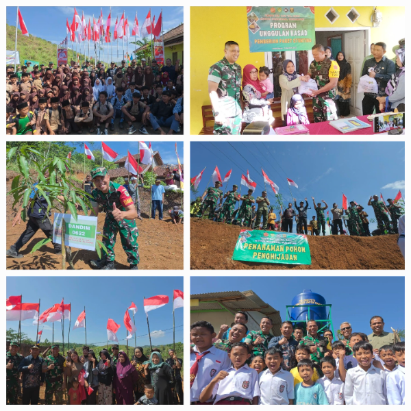 Kunjungan ini diakhiri dengan foto bersama, pemberian paket bantuan stunting dan sembako, serta penegasan kembali komitmen bersama untuk menjadikan TMMD Ke-125 Kodim 0622/Kab. Sukabumi sebagai momentum percepatan pembangunan yang membawa manfaat langsung bagi masyarakat.